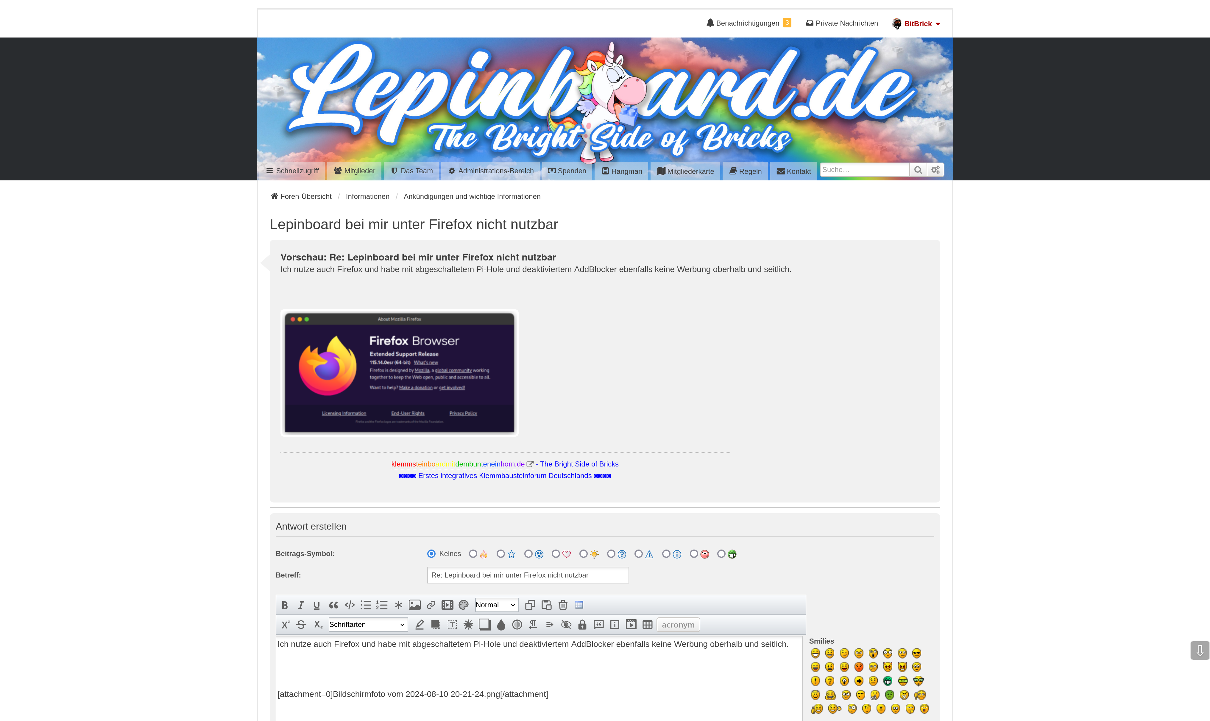Re: Lepinboard bei mir unter Firefox nicht nutzbar