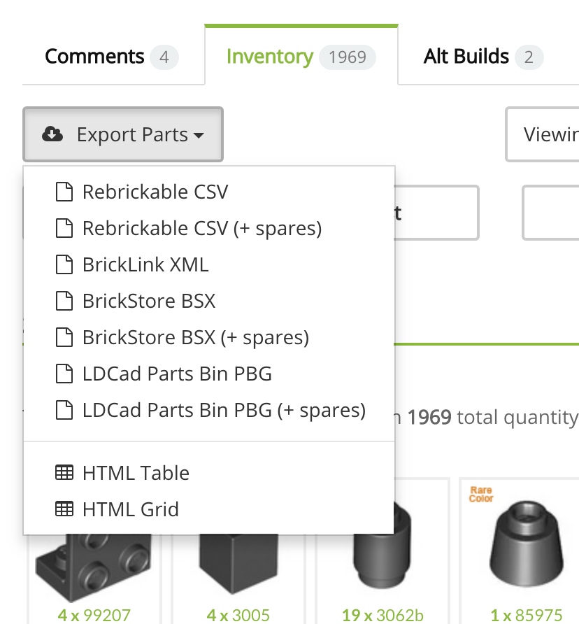 Ich mache das immer über rebrickable.com dort kannst du die Listen in diversen Formaten exportieren...