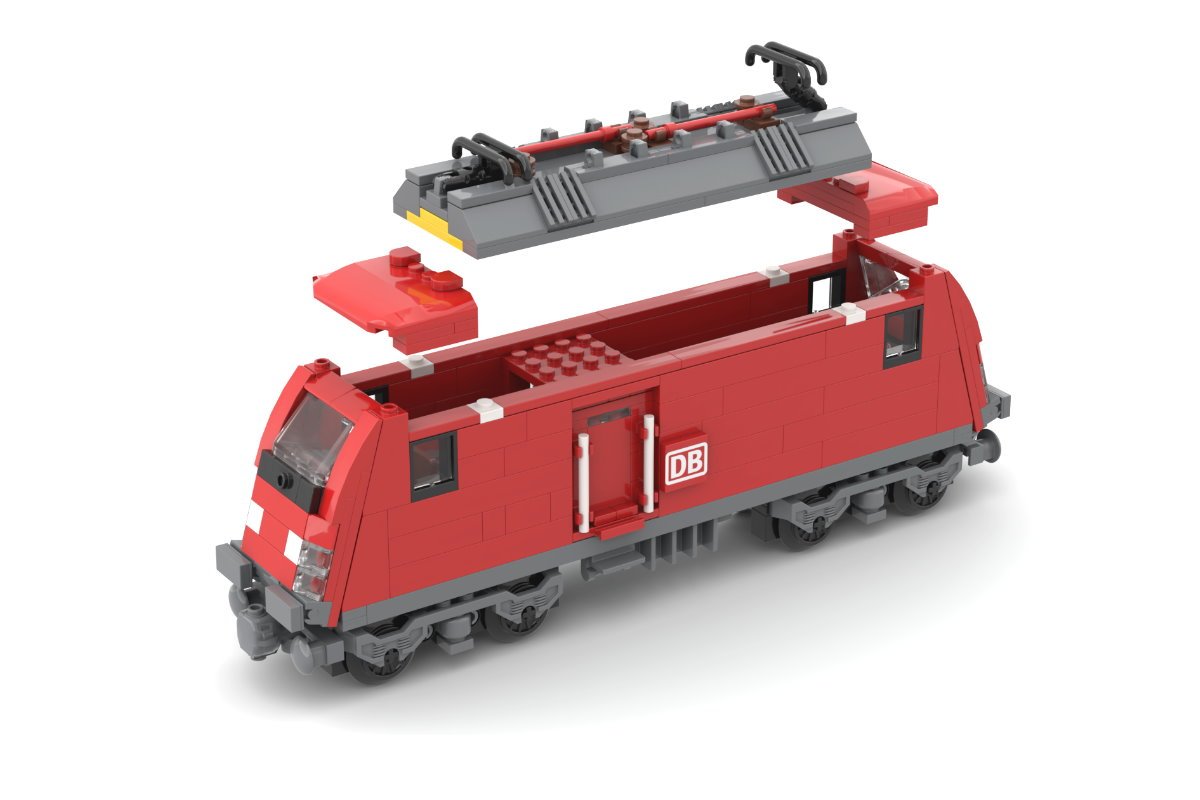 Steinchenshop ST-97100 - Rote Lokomotive "Deutsche Bahn AG" mit Speise- und Personenwagen
